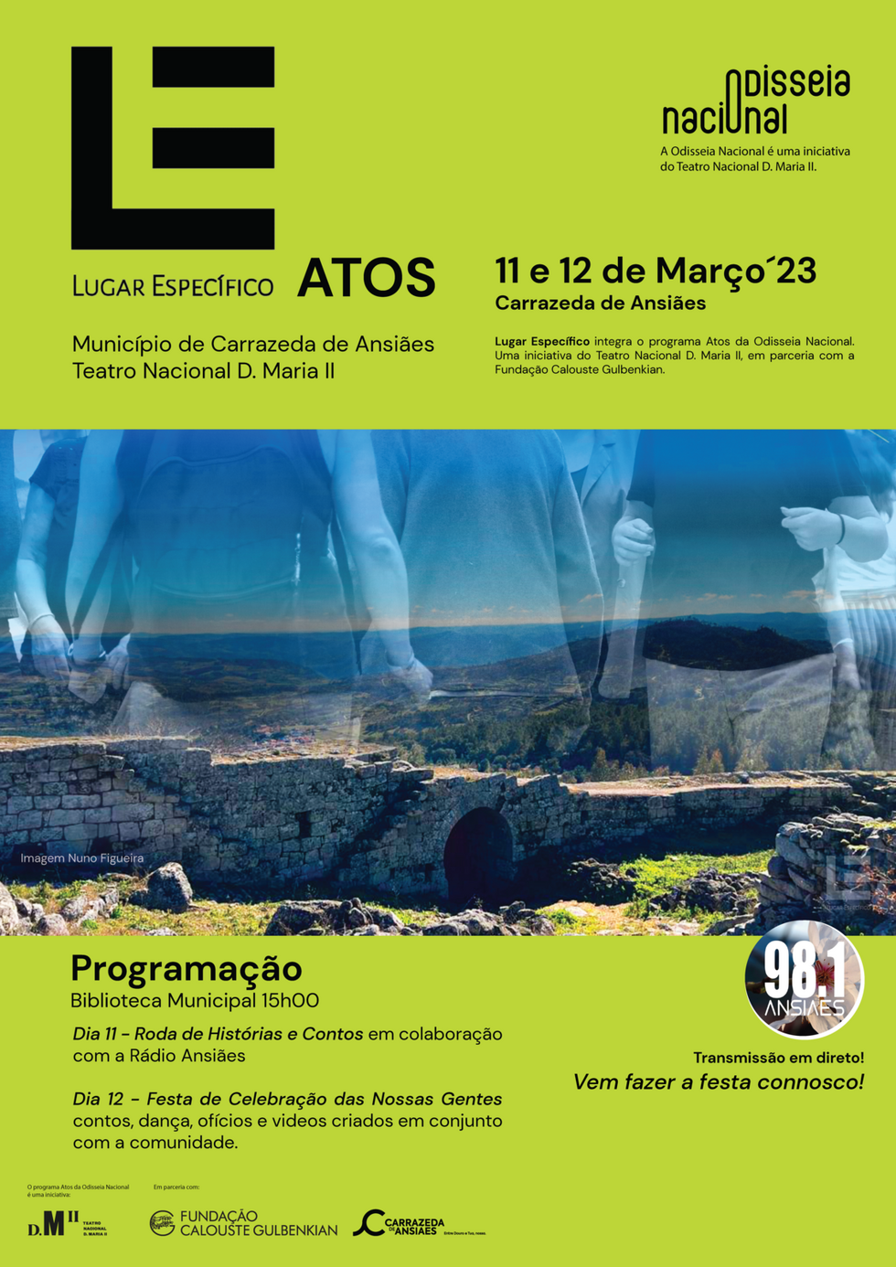 Carrazeda de Ansiães entra na rota da Odisseia Nacional, uma iniciativa do Teatro Nacional D. Maria II, o primeiro evento pertence ao programa Atos, Lugar Específico, em parceria com a Fundação Calouste Gulbenkian.