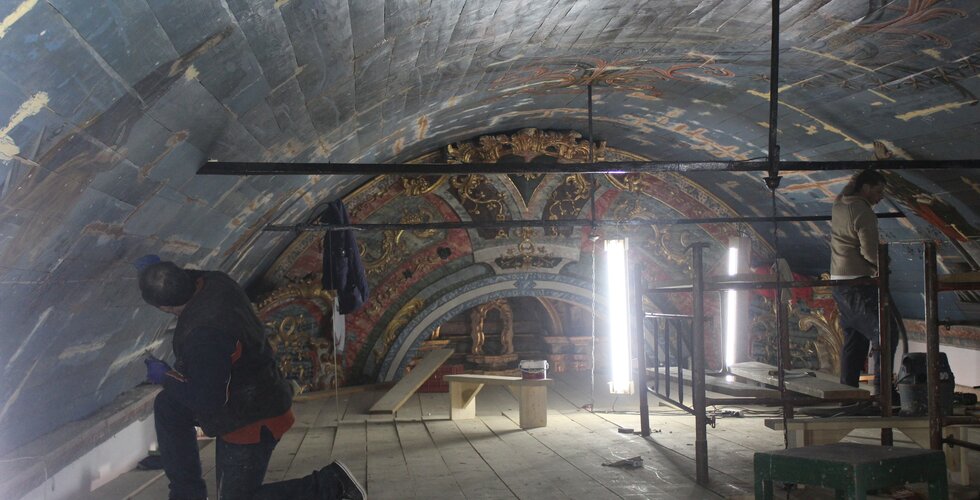 A conservação centra-se no restauro do forro da falsa abóbada de berço da nave do edifício, contendo nas extremidades a representações dos quatro apóstolos (S. Mateus, S. Marcos, S. Lucas e S. João) e ao centro a iconografia de Santo Amaro.