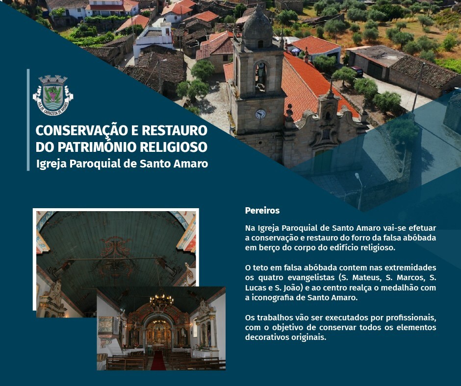 Inseridas na preservação do património religioso do Concelho de Carrazeda de Ansiães que o Município tem vindo a desenvolver, estão a decorrer obras de reparação e restauro na Igreja Paroquial de Stº Amaro em Pereiros.