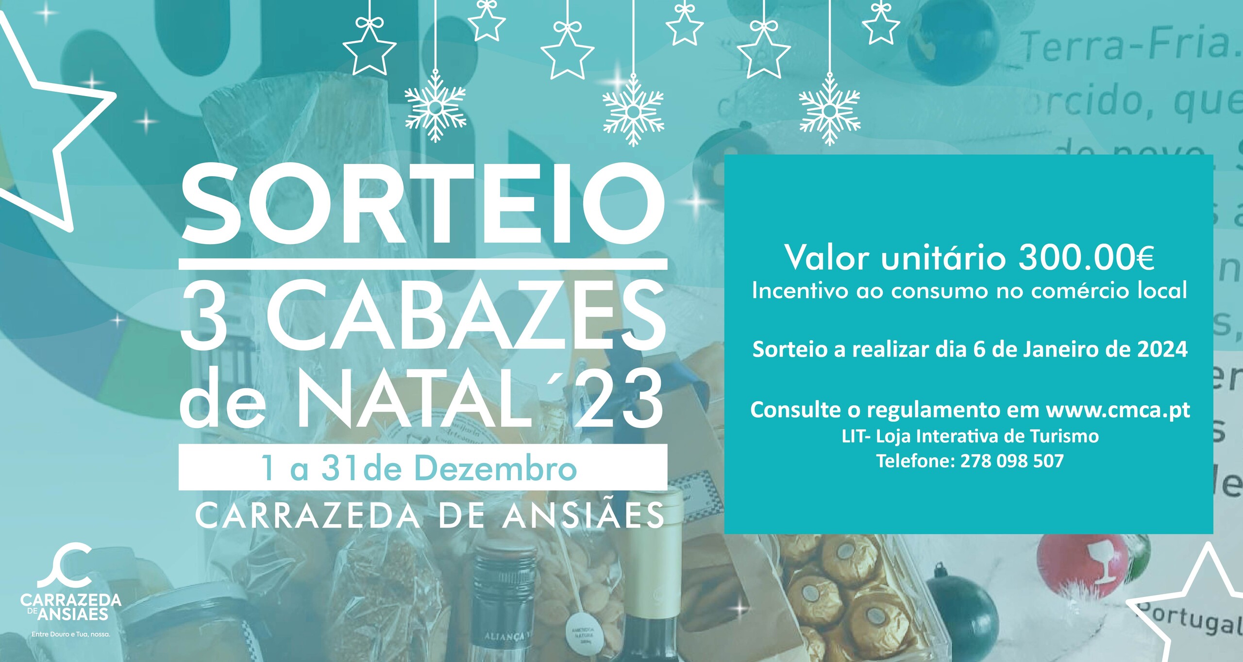 Como forma de incentivar o consumo no comércio local durante a quadra natalícia, o Município de Carrazeda de Ansiães volta a realizar, o sorteio de 3 Cabazes de Natal.