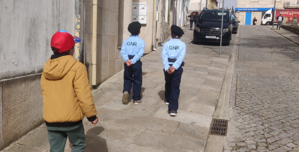 As crianças e as Forças de Segurança andaram hoje por vários locais da vila a fazer trabalho de sensibilização e prevenção.